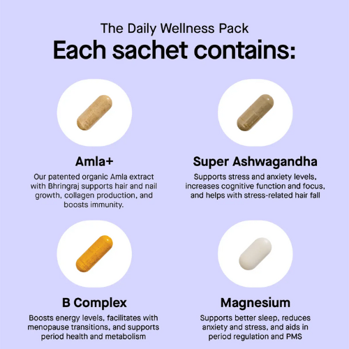 Boost immunity and energy with our carefully curated sachet of daily capsules.
